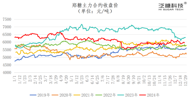 郑糖SR2501合约本周开动区间为5874~5993元/吨,报收于5944元/吨,周环比高潮62元/吨,涨幅1.05%,振幅2.02%。
