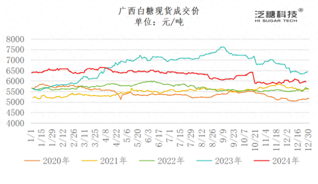 欺压周五,广西制糖集团主流报价6000~6100元/吨,周环比下调10~20元/吨;云南制糖集团新糖报价6000~6030元/吨,下调40元/吨;加工糖厂主流报价区间6300~6580元/吨,部分周环比退换10~60元/吨,涨跌不一。