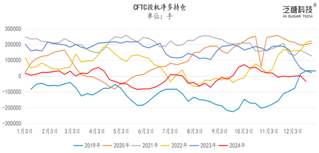 欺压12月17日当周,ICE原糖期货+期权总抓仓为1072224手,较前一周减少5829手。投契多头抓仓167576手,较前一周减少21871手;投契空头抓仓202312手,较前一周增多15160手;投契净空抓仓为34736手,较上周增多37031手。